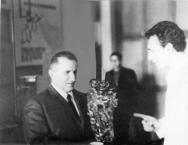 6. C.Комісаренко – «міністр спорту» гурзуфського «Супутника» вручає подарункові медалі родині Юрія Гагаріна. Крим, 1965