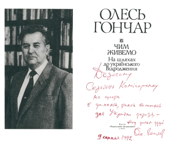 22. Напутні слова Олеся Гончара С. Комісаренку перед дорогою до Лондона. 1992.