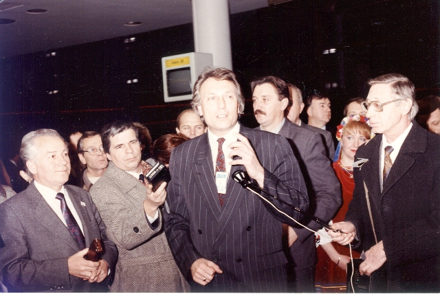 16. На конгресі СФУЛТу – віце-прем’єр С.Комісаренко, міністр екології Ю.Щербак, заступник міністра охорони здоров’я А.Сердюк. Київ, 1990.