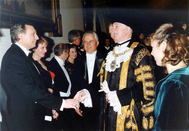 24. Лорд-мер Лондона вітає Посла України та його дружину на прийомі на честь Президента України – Л.Кравчука. Гілдхол, Лондон, 1993.