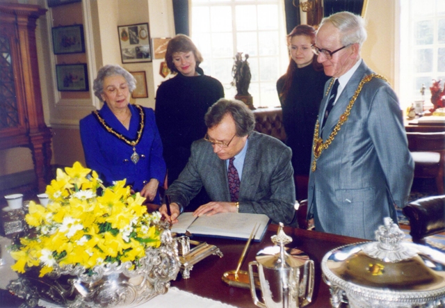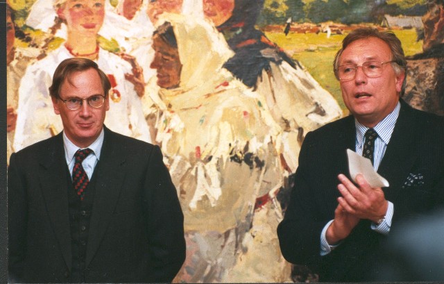 25. Лорд Хау вітає Посла України та його дружину з Днем Незалежності України. Музей Лорда Лейтона, Лондон, 1993.