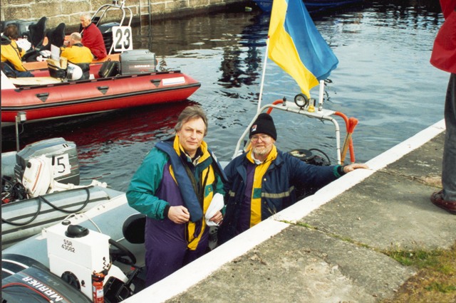 27. Перед гонкою на човнах вздовж озера Лохнес під прапором України. Шотландія, 1993.