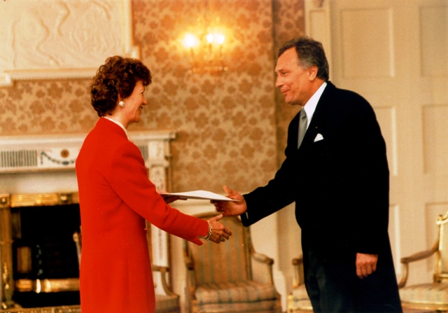 32. Вручення Вірчих грамот Президенту Ірландії Мері Робінсон. Дублін, 1995.