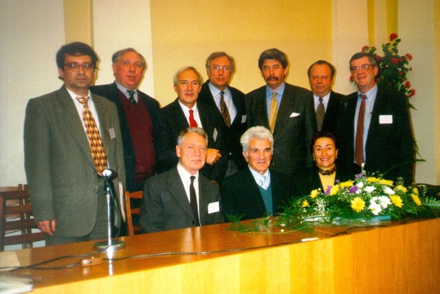 46. На відзначенні 75 років Інституту біохімії ім.О.В.Палладіна. Зліва – направо, І ряд: Ч.Пастернак (Британія), Г.Мацука, Н.Гула, ІІ ряд: С.Костерін, О.Єгоров (Росія), П.Заводський (Угорщина), С.Комісаренко, К.Скрябін (Росія), Д.Мельничук, Р.Стойка. Київ, 2000.