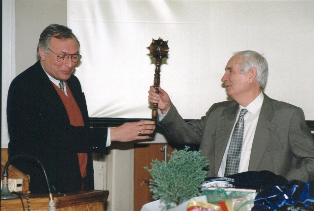40. Після вручення диплома Почесного доктора Кінгстонського університету: разом з ректором університету сером Франком Лемплом. Барбікан, Лондон, 1997.