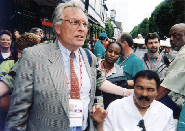 50. Легендарний боксер Мухамед Алі вітає голову української делегації на Іграх Спеціальної Олімпіади. Ірландія, 2003.