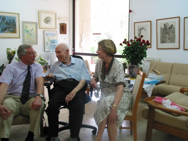 56. Разом з дружиною візит до колишнього Президента Ізраїлю і відомого біохіміка – професора Ефраїма Кацира-Качальського. Вайцманівський Інститут, Реховот, Ізраїль, 2004.