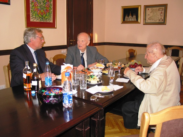 53. «Старі» друзі (зліва – направо): академік Національної академії США К.Раєвський (ФРН), С.Комісаренко, академік Національної академії США М.Села (Ізраїль). Київ, 2003.