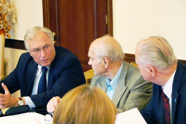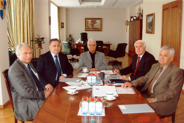 67.Делегація України на «Конвенції із заборони біологічної зброї» в Женеві (справа від глави делегації – зав.відділом МЗС України Р.Рустамов, зліва – віце-президент НАМНУ академік НАНУ Ю.Кундієв та віце-президент НААНУ академік НААНУ А.Головко. Женева, 2008.
