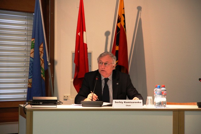 81. Професор Комісаренко головує на Семінарі IUPAC з хімічної і біологічної зброї в Національних лабораторіях Spiez. Швейцарія, 2012.