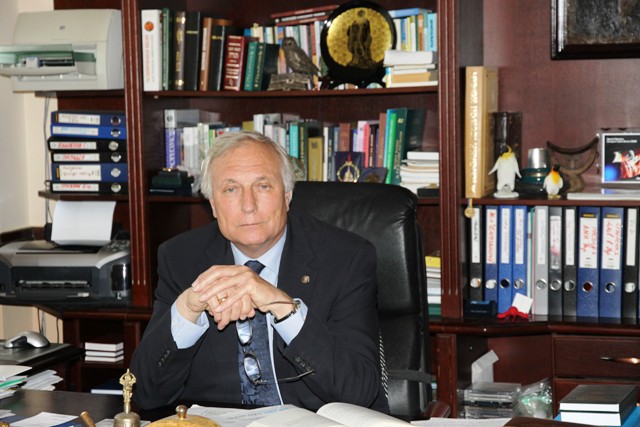86. В кабінеті директора Інституту біохімії ім. О.В.Палладіна НАН України. Київ, 2013.