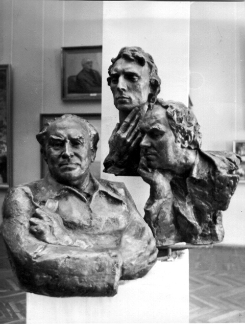 87. Скульптурна група «Родина вчених – академік В.Комісаренко із синами» (автор – народний художник України В.Зноба). Виставковий зал, Київ, 1981.