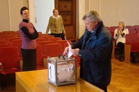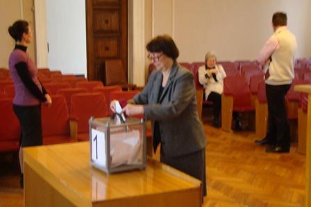 Колектив співробітників шляхом таємного голосування виявив одностайне бажання бачити Сергія Васильовича Комісаренка знову директором свого інституту і побажав йому подальших успіхів.