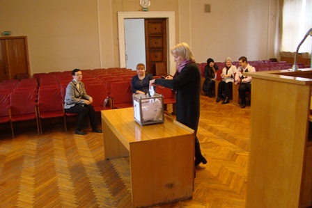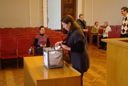 Колектив співробітників шляхом таємного голосування виявив одностайне бажання бачити Сергія Васильовича Комісаренка знову директором свого інституту і побажав йому подальших успіхів.