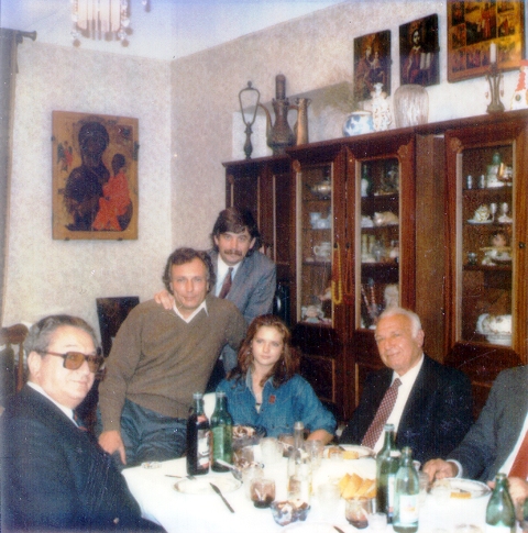 15. Друзі-вчені в гостях у родини С.Комісаренка: проф.Гергей (Угорщина), С.Комісаренко, К.Скрябін, Аня Комісаренко, проф.Кацір-Качальський (Ізраїль). Київ, 1988.