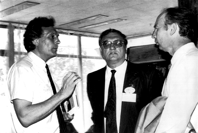 16. На конгресі СФУЛТу – віце-прем’єр С.Комісаренко, міністр екології Ю.Щербак, заступник міністра охорони здоров’я А.Сердюк. Київ, 1990.