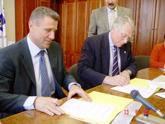 61. Президент Національного олімпійського комітету України С.Бубка та президент «Спеціальної Олімпіади України» підписують угоду про співпрацю між НОК та СОУ. Київ, 2006.