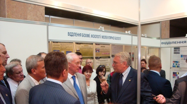 77. Директор Інституту біохімії доповідає Прем’єр-міністру України про створення антигемофілічних ліків. Виставка «Наука – виробництву» в рамках Всеукраїнського Фестивалю науки. Київ, 2011.