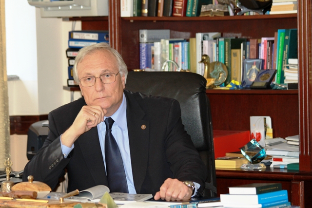 86. В кабінеті директора Інституту біохімії ім. О.В.Палладіна НАН України. Київ, 2013.