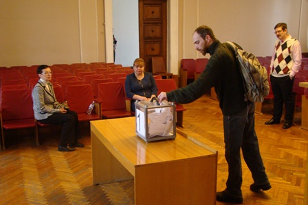 Колектив співробітників шляхом таємного голосування виявив одностайне бажання бачити Сергія Васильовича Комісаренка знову директором свого інституту і побажав йому подальших успіхів.